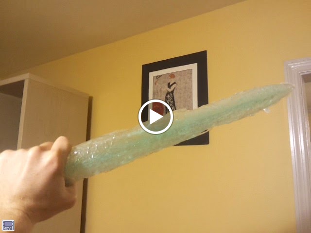 For the mold, I was lucky to have a training sword I could use. If you do not, you may be able to carve one out of foam. I wrapped my training sword in saran wrap and formed the mold around it on one half. The saran wrap ended up making these sort of ridges in the surface of my mold, which ended up as really cool cracks in the surface of my resin. It was perfect for an icy material, though I ended up covering them with another layer of resin (which I'll explain later).